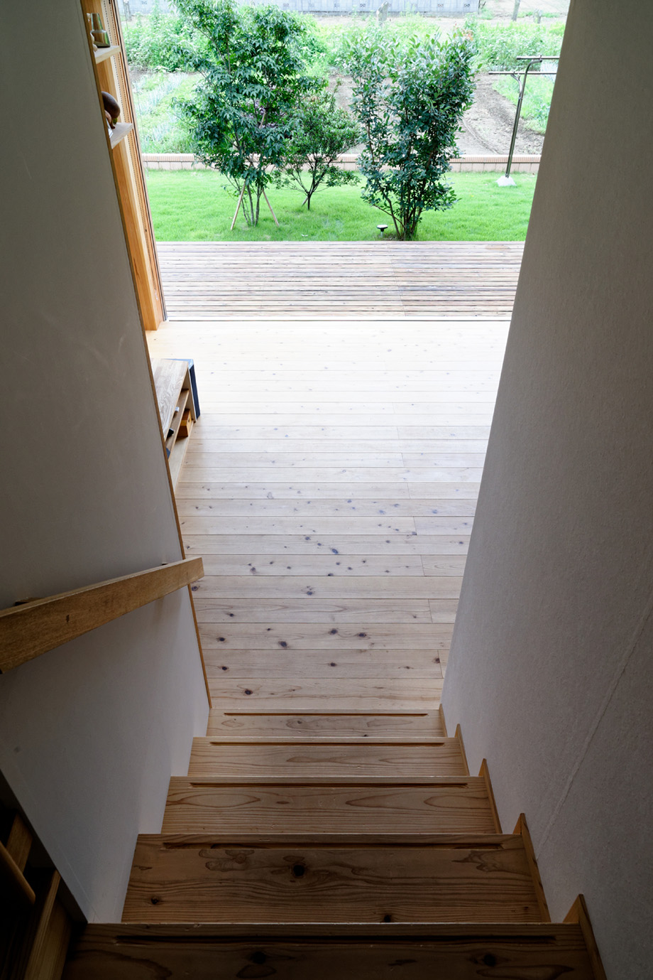 目の前にデッキと庭が広がる。