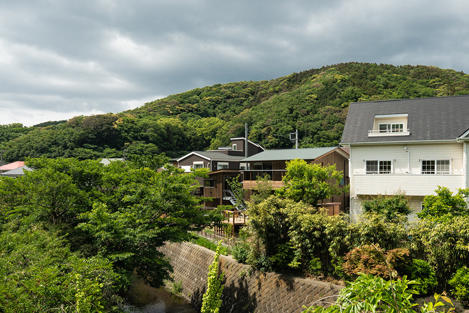 川と山に挟まれた住宅。