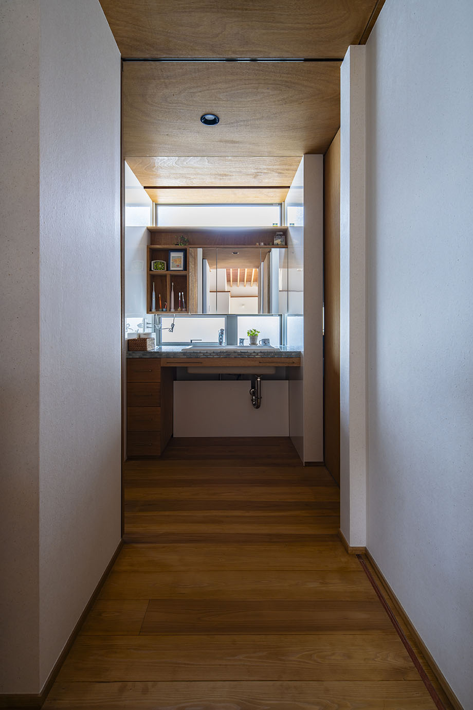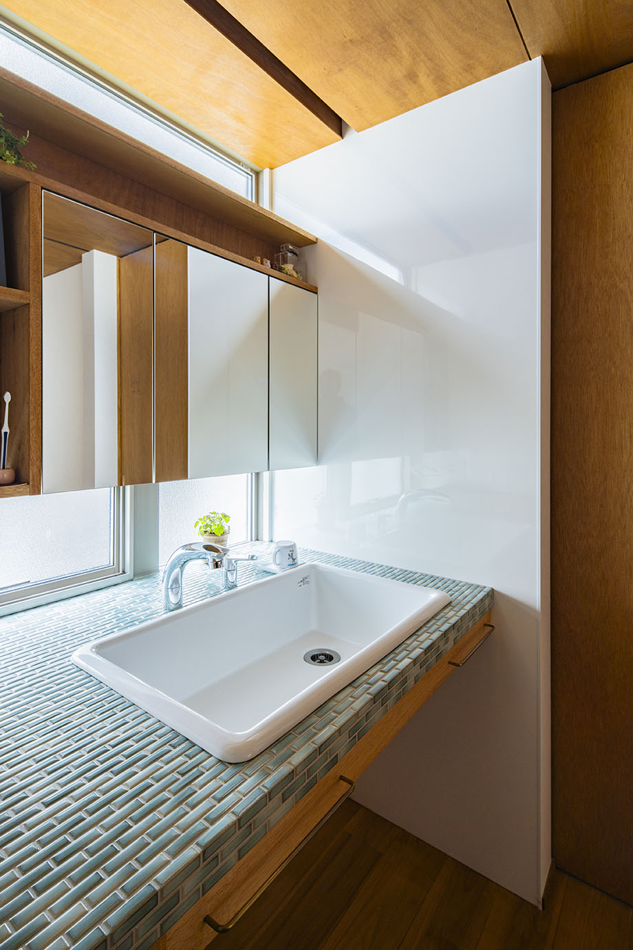 自然光が入り込んでくる洗面化粧台。