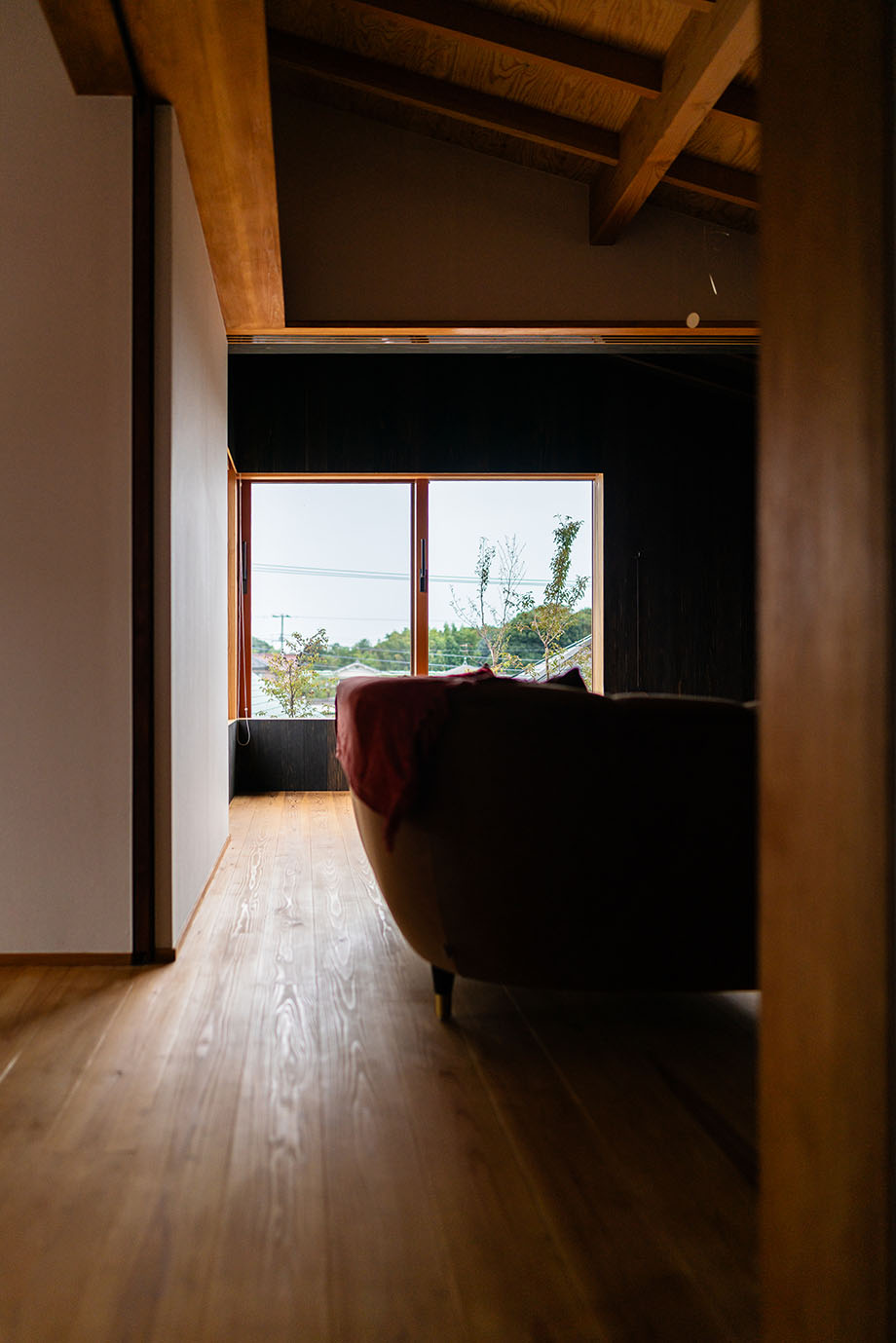 音楽や映画を楽しむための部屋に繋がるインナーテラス