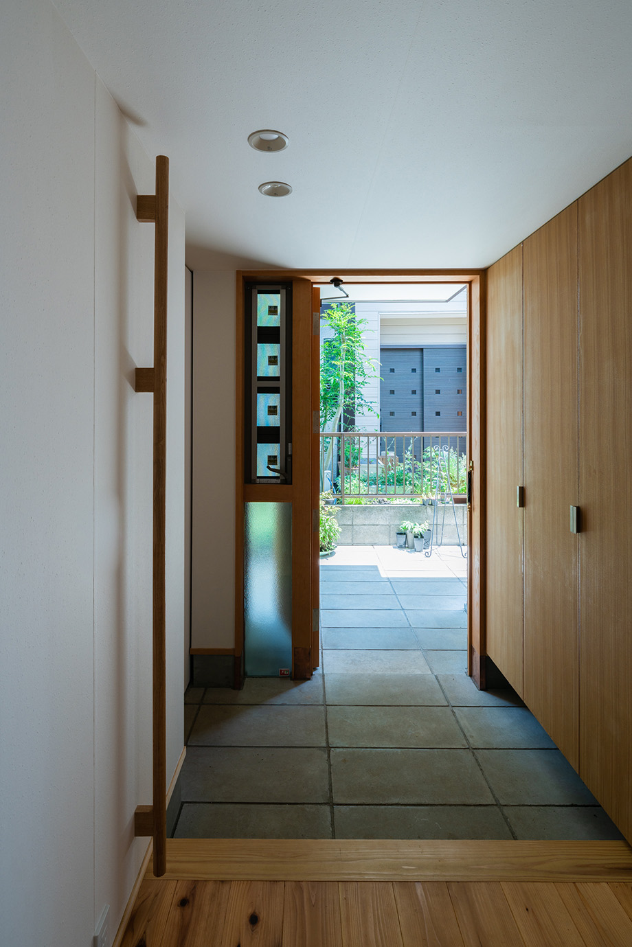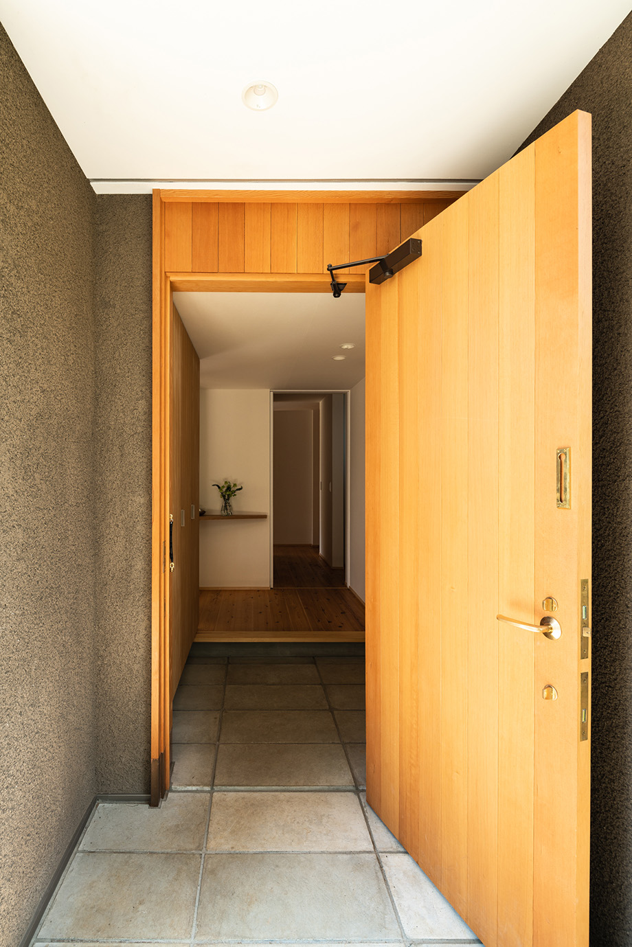 玄関を開けるとお母さまの玄関が見えるようになっている(いた)。
