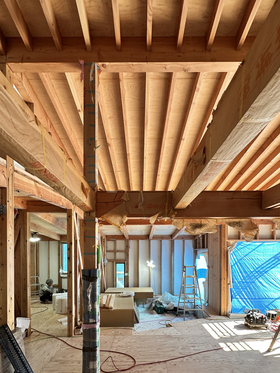 袖ケ浦市の平屋「紅の家」の軸組。